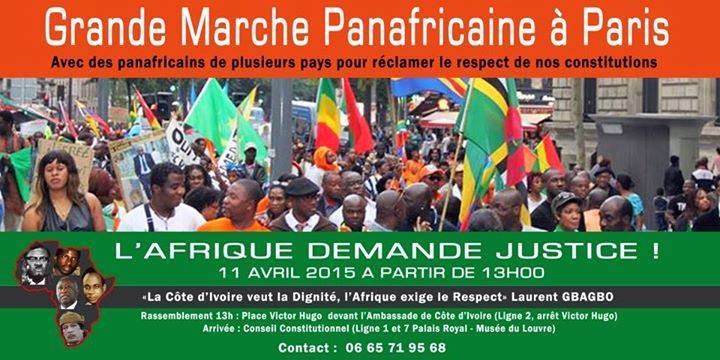 Ce 11 avril 2015 donc, nous allons envoyer un message clair au monde et surtout à l'Union Africaine. Nous voulons que nos Constitutions africaines soient respectées et que plus jamais la force ne prévale sur le droit comme cela a été le cas en Côte d’Ivoire par exemple avec le président Gbagbo. Nous voulons une Union Africaine des peuples et non des politiciens avec un véritable Parlement africain. Nous ne voulons plus d'une Union Africaine financée en grande partie par l'Union Européenne. Nous ne voulons plus d'Africains à la Cour Pénale Internationale, ce tribunal de négriers. Nous voulons des manuels scolaires qui insistent plus sur l'esclavage, la colonisation et le néocolonialisme que sur la seconde guerre mondiale. Nous voulons une Afrique digne, une Afrique souveraine et indépendante…